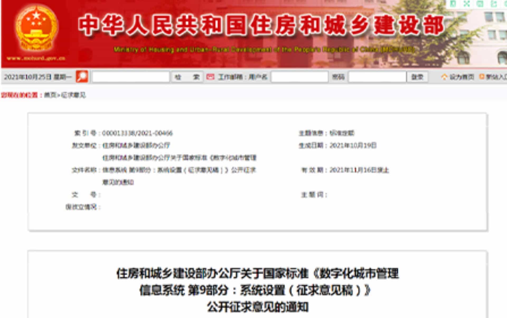 10月19日,住房與城鄉(xiāng)建設(shè)部辦公廳正式發(fā)文,由數(shù)字政通作為主要起草單位的的國家標(biāo)準(zhǔn)《數(shù)字化城市管理信息系統(tǒng)...