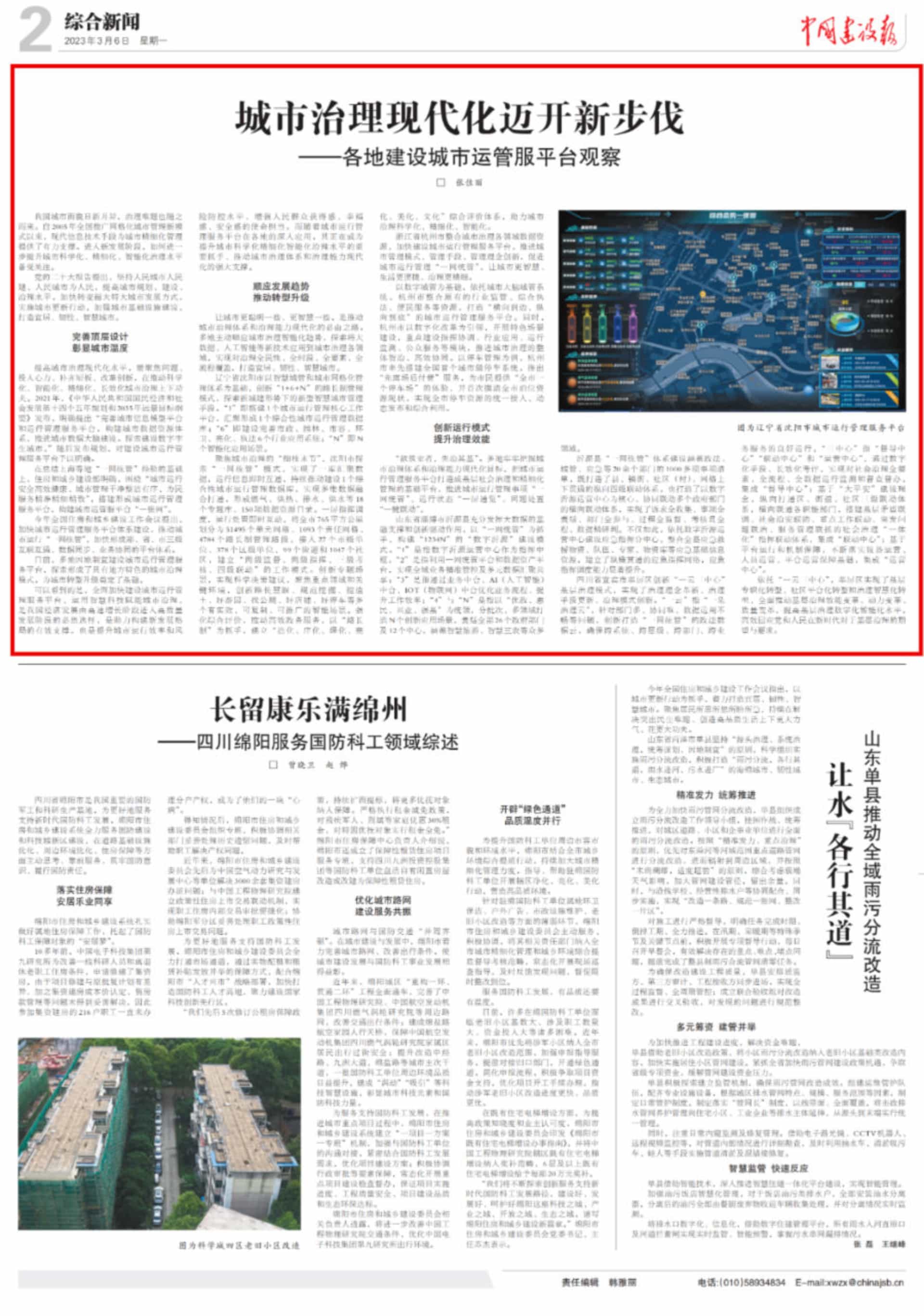 3月6日,中國建設(shè)報刊載文章《城市治理現(xiàn)代化邁開新步伐——各地建設(shè)城市運管服平臺觀察》,介紹了沈陽、杭州、...